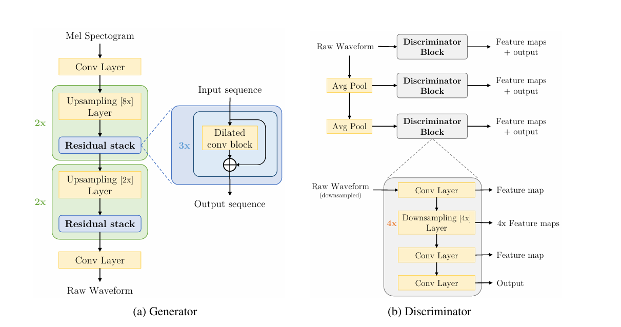 Quick note: In 2021 a paper stated Multi Resolution Discriminator is all you need, where they took out the Multi-Period Discriminator from HiFi-GAN and found no significant quality degradation.